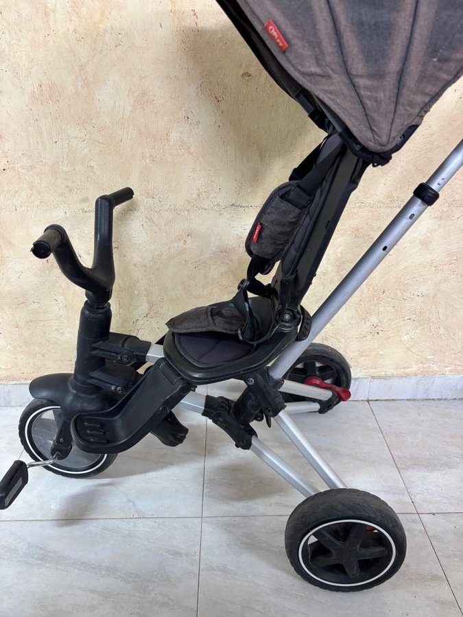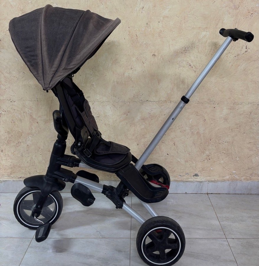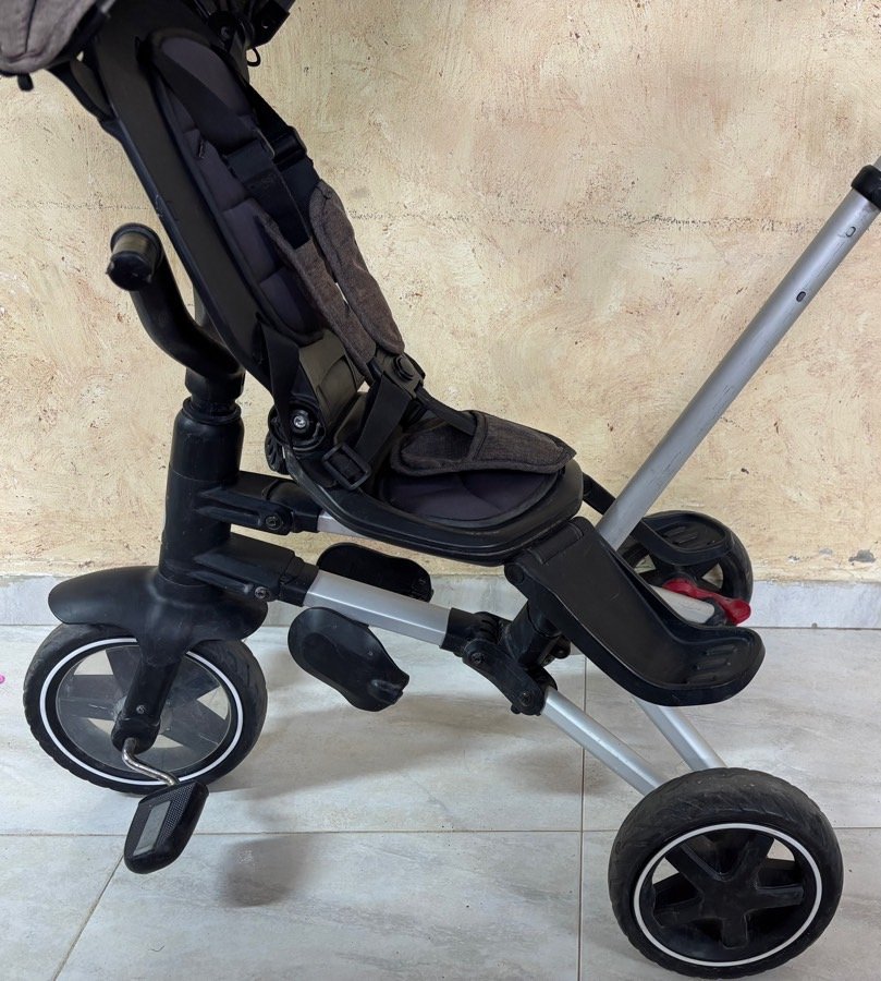 بسكليت المنيوم ب ١٠٠ شيكل خفيف الوزن قابل للضب ممكن الاهل يتحكموا فيه وممكن الطفل يتحكم فيه عدة وضعيات للمقعد كرسي البسكليت دوار للامام والخلف حسب رغبة الاهل متوفر حزام امان