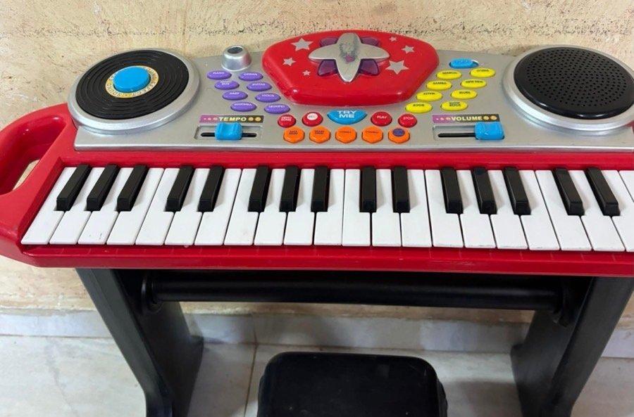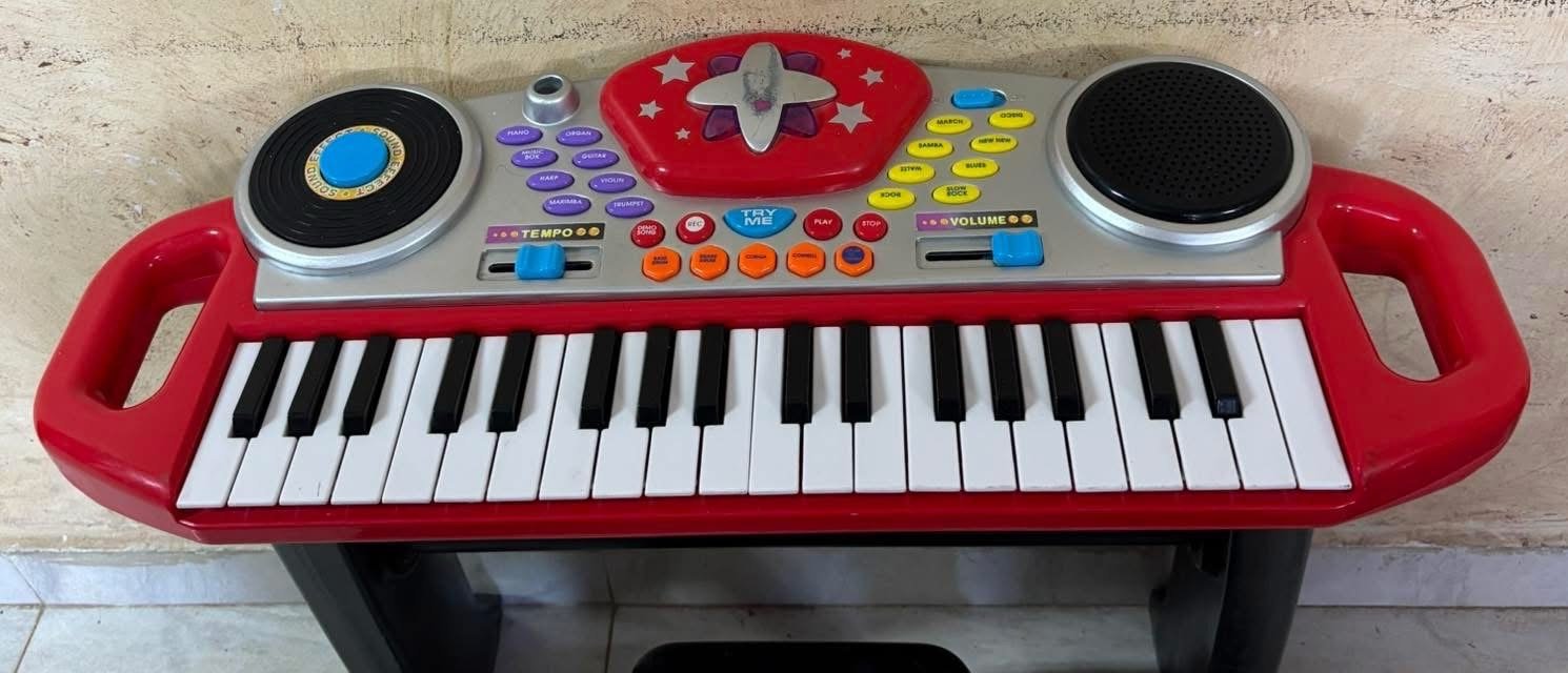 بيانو تعليمي للاطفال فيه عدة اصوات وعدة ايقاعات مع تسجيل عزف