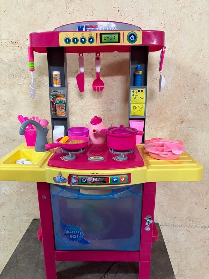 مطبخ العاب بلاستيك ( ارتفاع ٦٨سم ، عرض ٤٩ سم ، عمق ٢٥سم ) الغاز بشتغل على بطاريات بطلع صوت واضاءه
