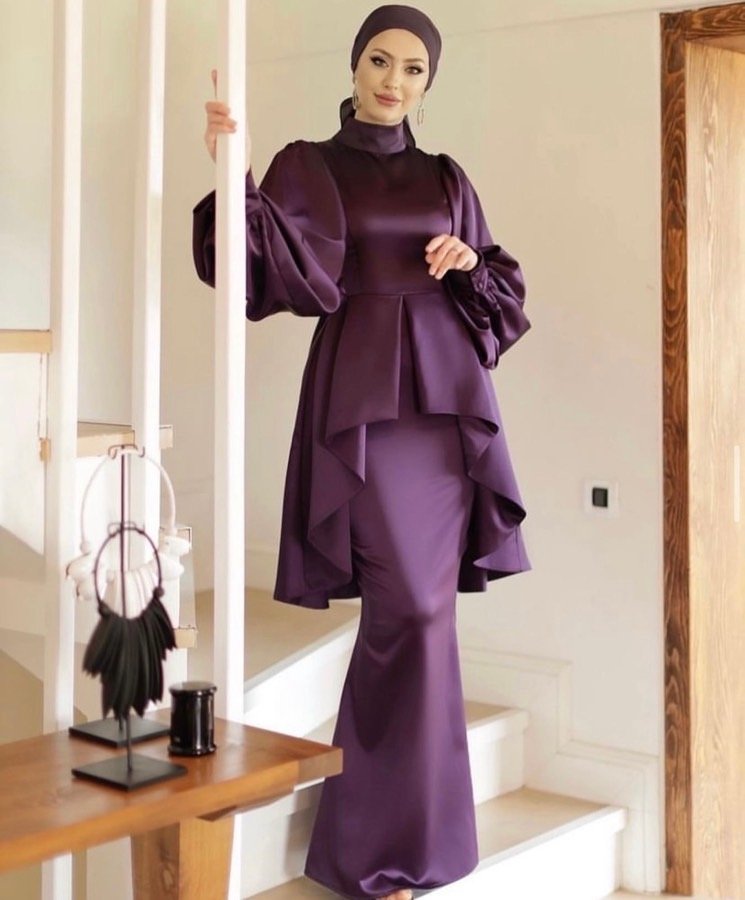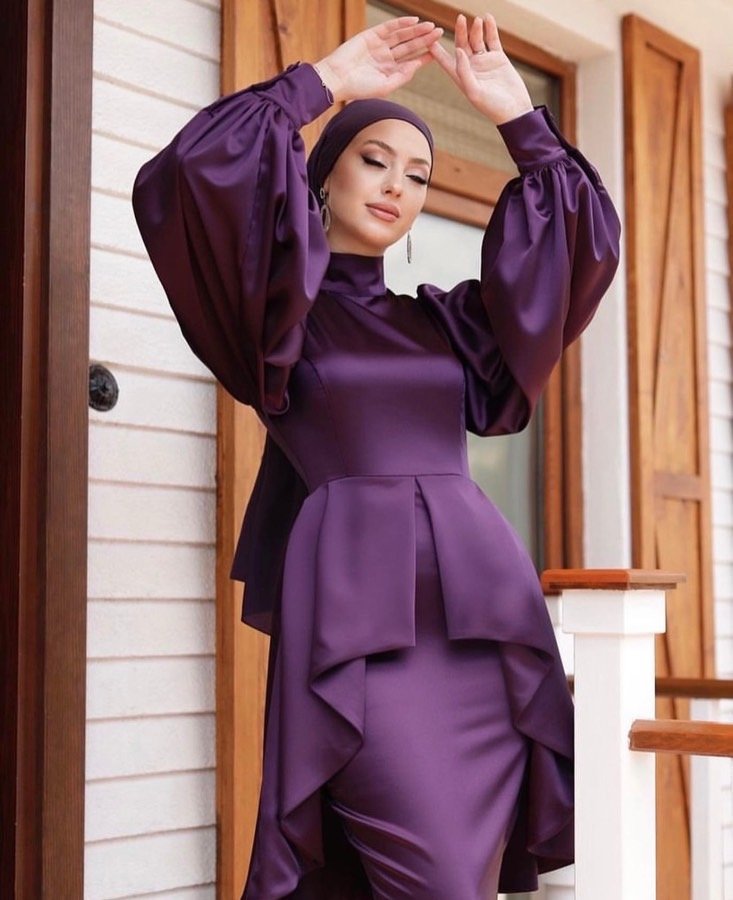 فستان بنفع شرعي او عادي لون بيج نفس العارضة