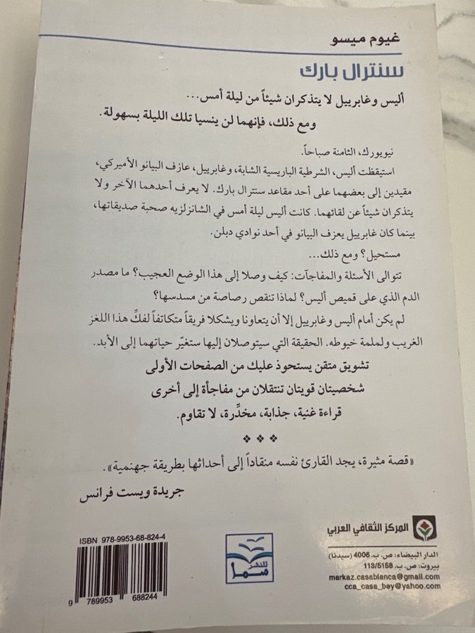رواية تدور حول شرطية وعازف موسيقي يستيقظان ذات صباح ليجدا نفسيهما مقيدين بسلسلة على أحد مقاعد حديقة سنترال بارك في نيويورك، ولم تكن بينهما معرفة سابقة. كيف وصلا إلى هناك، وهل يمكن لشخص ما أن يكون في مكانين مختلفين متباعدين في ذات اللحظة، لكن دائما هناك جانب من الحقيقة لا يظهر إلا في اللحظات الأخيرة،