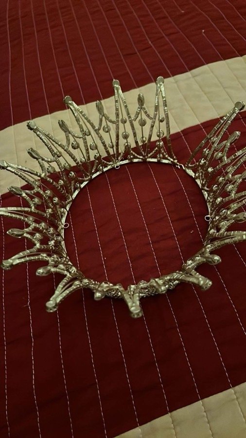 تاج حجم كبير بفتح من الخلف اللون فضي وعلى الطبيعة احلا من الصوره في كسر بسيط كثير مش واضح