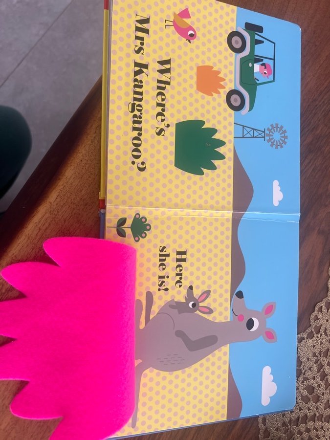In Where’s Mrs Kangaroo?, you’re on the look out for Mr Koala, Mrs Platypus, Mr Emu and Mrs Kangaroo hers