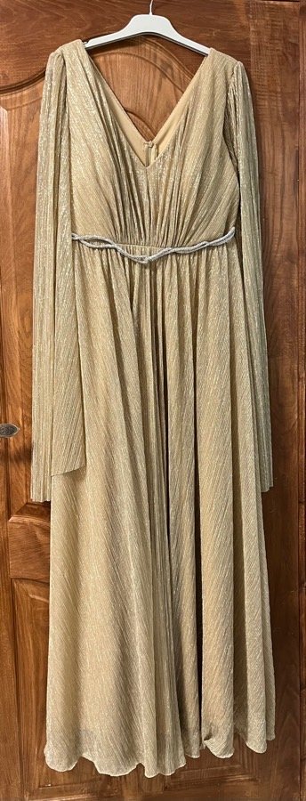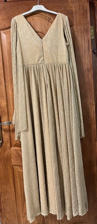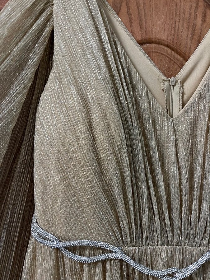 فستان ذهبي لبسة واحدة مدة ساعتين، مغسول دراي كلين سعر الشراء ٤٥٠ سعر البيع ٣٠٠