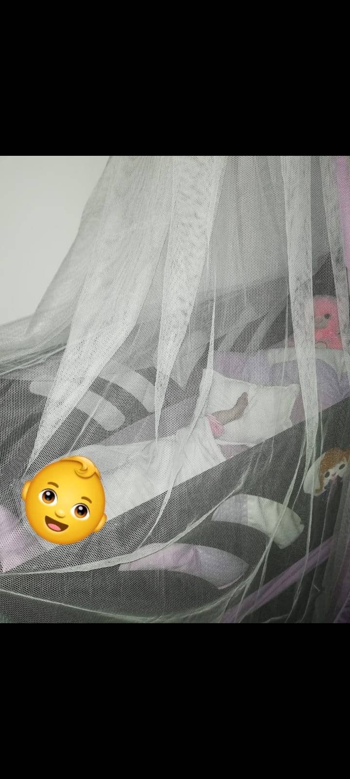 سرير بيبي مع دفتين واسعات وجرارين ، ومع ملفه بناتي لون نهدي وناموسية وعصايتها ، وضعه جيد جدا سعره الاصلي 2000