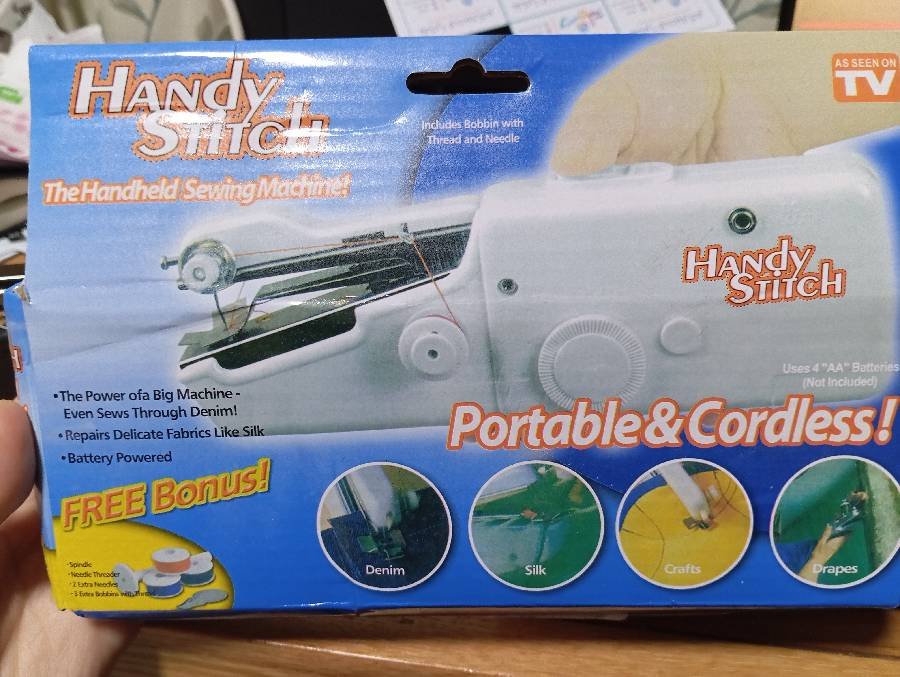 Handy stitch عملية وسريعة وخياطتها قوية وصعب تنفك استخدمتها لمرة واحدة فقط وبدي أبيعها لاني اشتريت ماكنة خياطة كبيرة السعر قابل للتفاوض