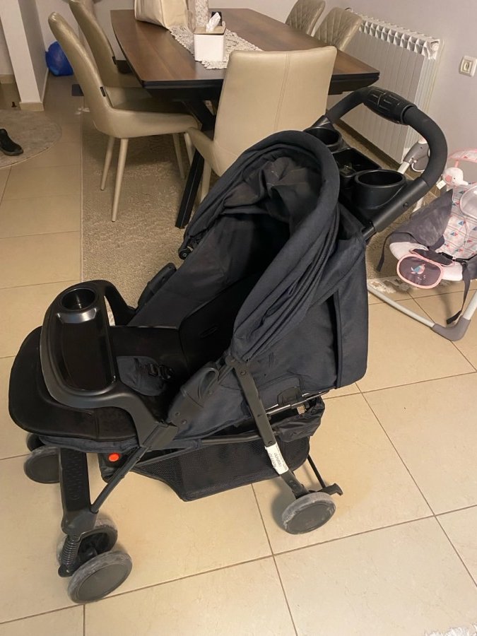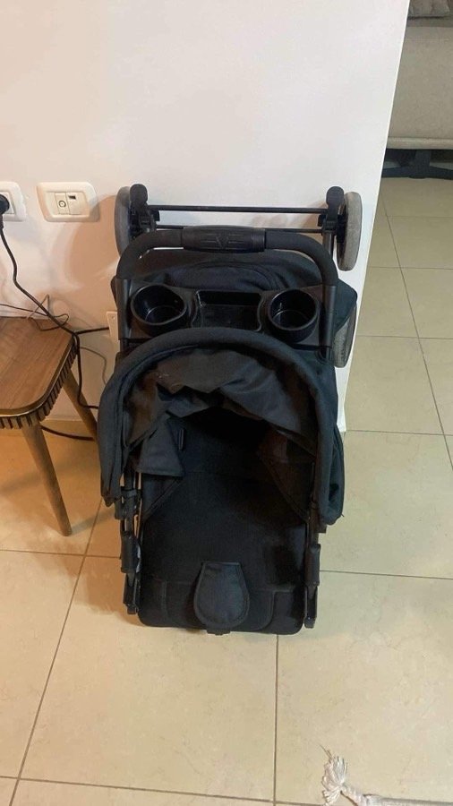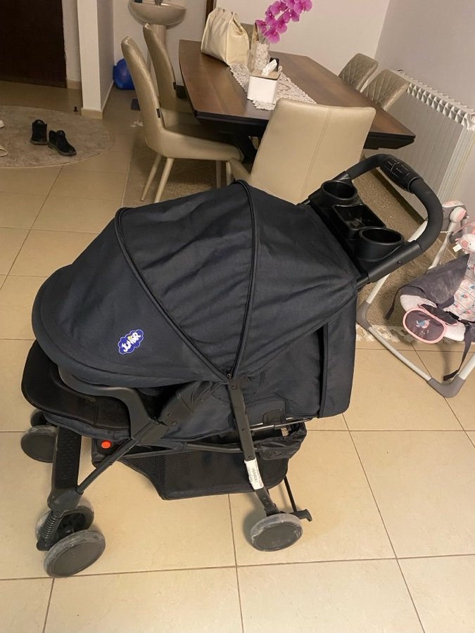 عرباية اطفال من عمر يوم من شركة جونيور شبه جديد استعمال واحد فقط لون اسود .