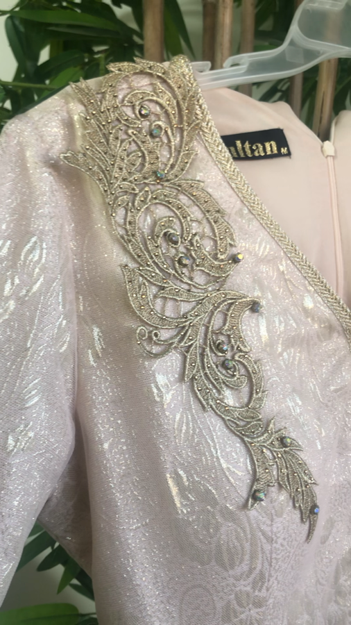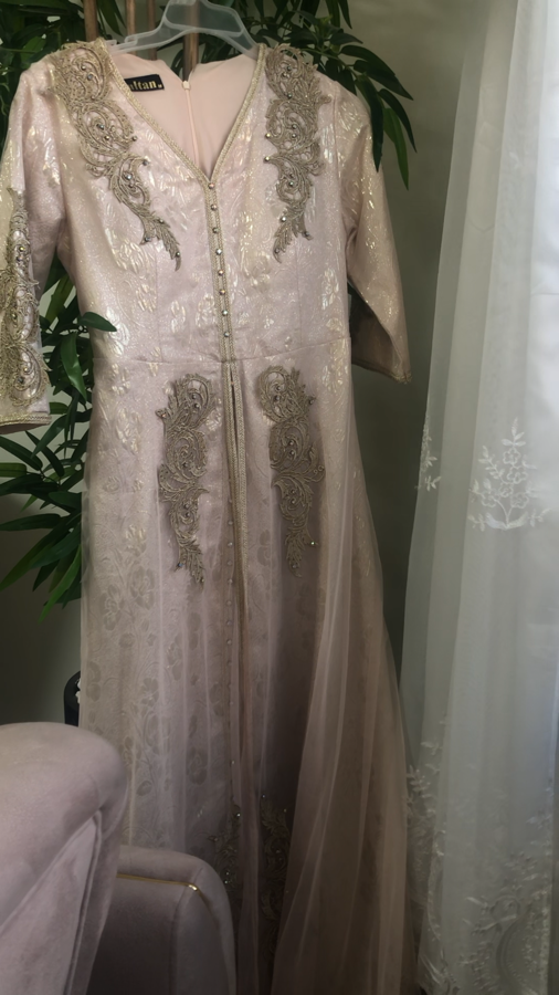 قفطان شبيه بالفيتان لون زهر بارد لبيج مناسب لجميع المناسبات مناسبه لنمر من ٣٨-٤٤