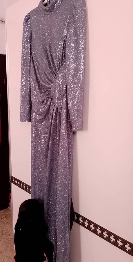 فستان شرعي للمناسبات على قد الجسم نمرة 40-42 بجنن عاللبس .. ملبوس مرة واحدة