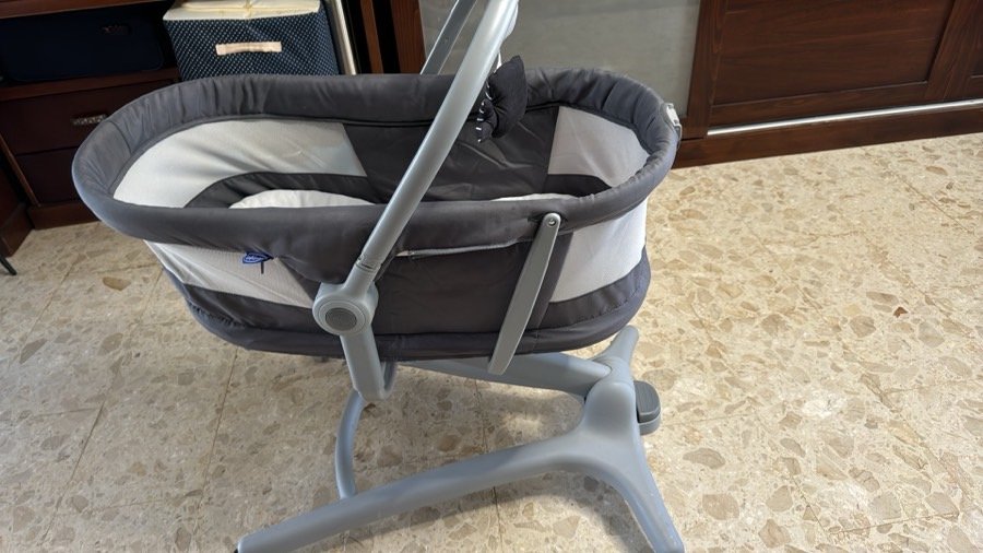 تخت بيبي متنقل سهل النقل من مكان لآخر يتحول إلى كرسي طعام ومن الممكن رفعه أو انزاله