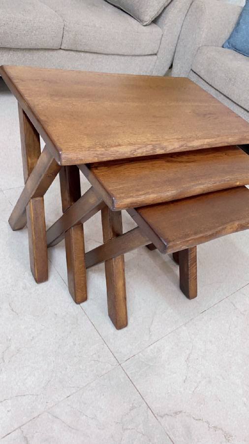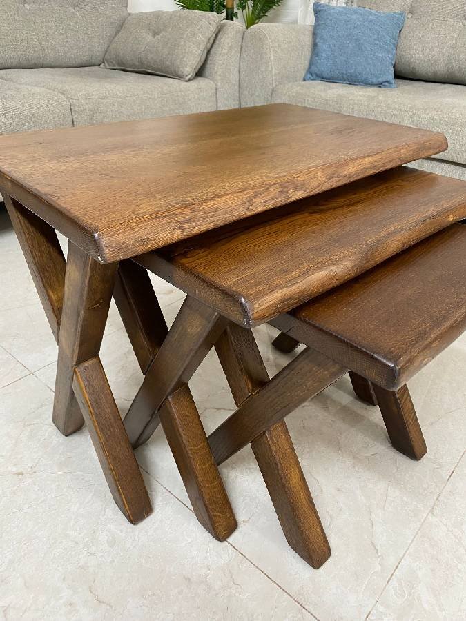 طاولة وسط مع طقم سكملات خشب بلوط طبيعي