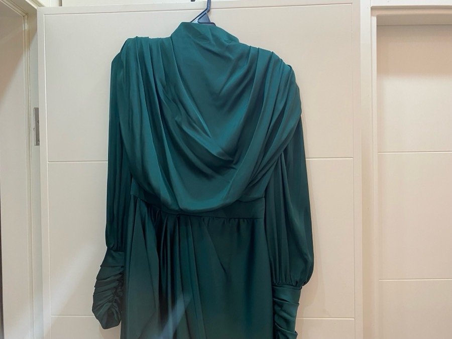 فستان حجابي مناسب للحفلات الرسمية لون اخضر حجم ٤٠