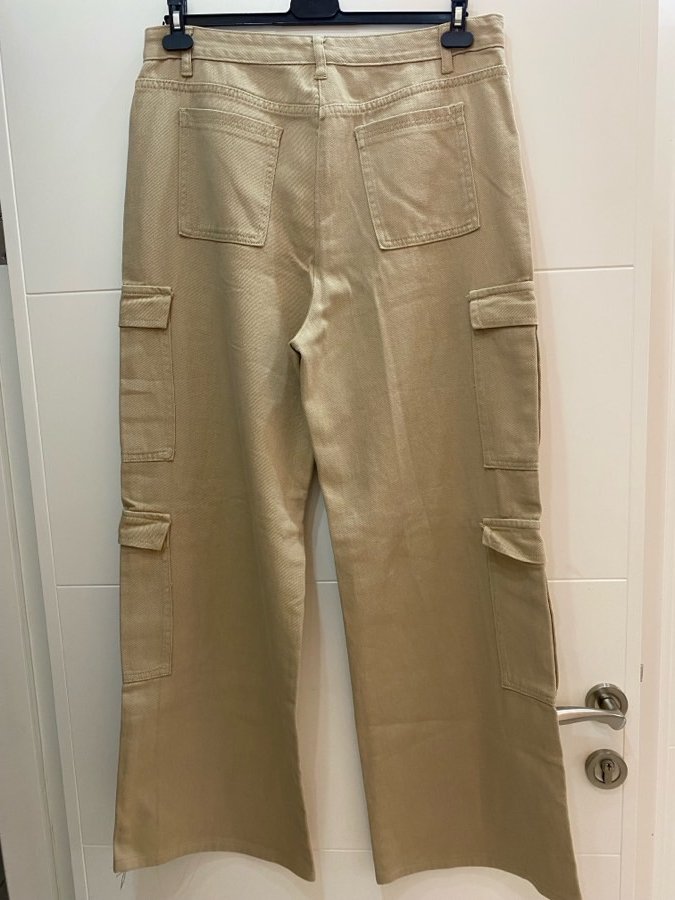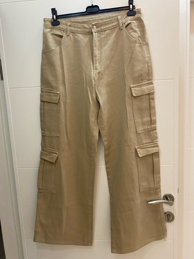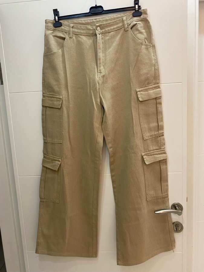 بنطلون جينز لون بيج مع جيوب على الجوانب حجم اكس لارج/٤٤