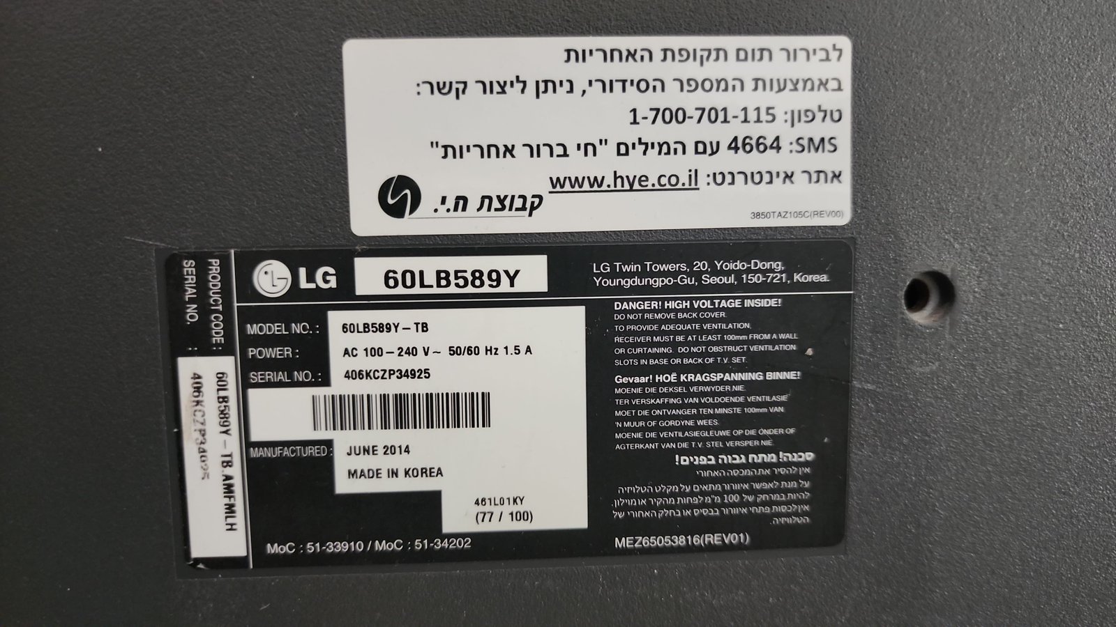 تلفزيون LG - 60LB589Y موديل 2014 - 60 بوصه بحالة ممتازة وبدون اي اضرار سبب البيع : انتقال الى بيت جديد