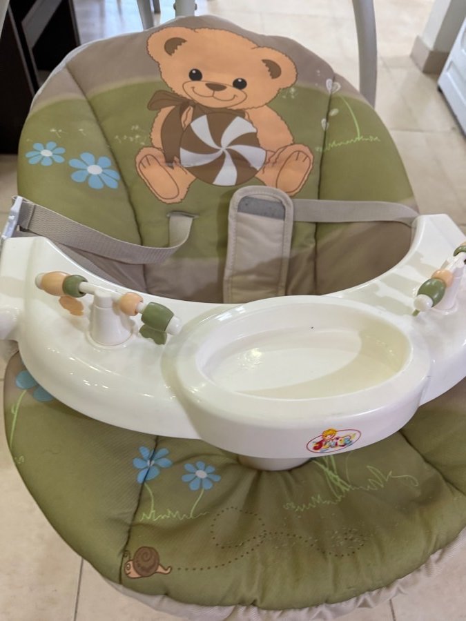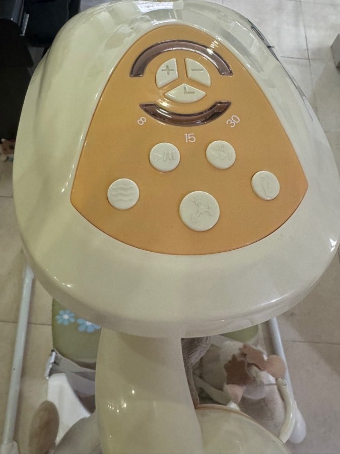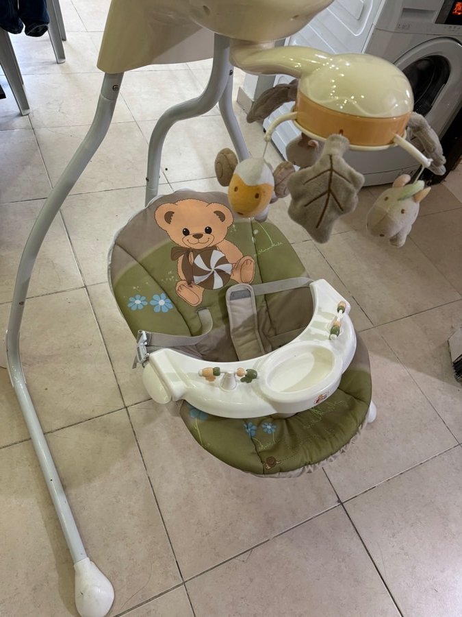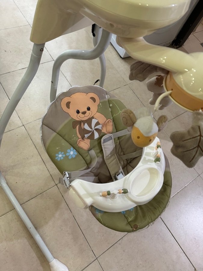 مرجيحة بيبي في حالة ممتازة، على الكهربا او شحن ، فيها عدة سرعات و موسيقى و اضائة ، في كرتونتها