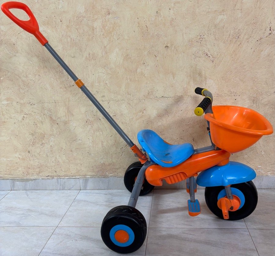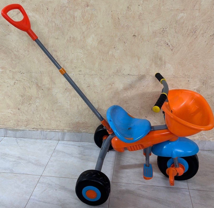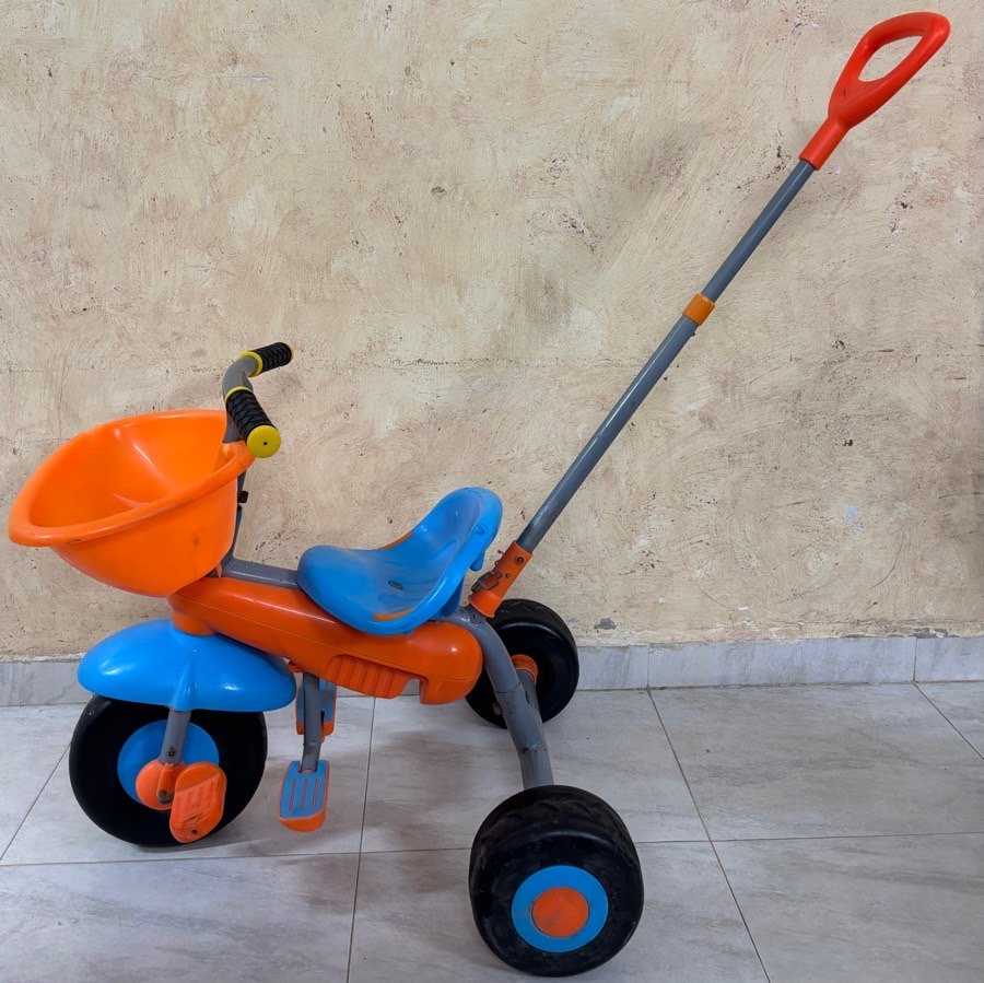 بسكليت اطفال مناسب من عمر سنتين لخمس سنين … فيه ايد جراره للتحكم فيه وممكن ازالتها …..