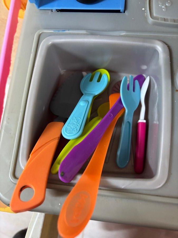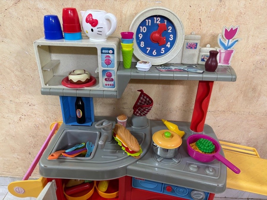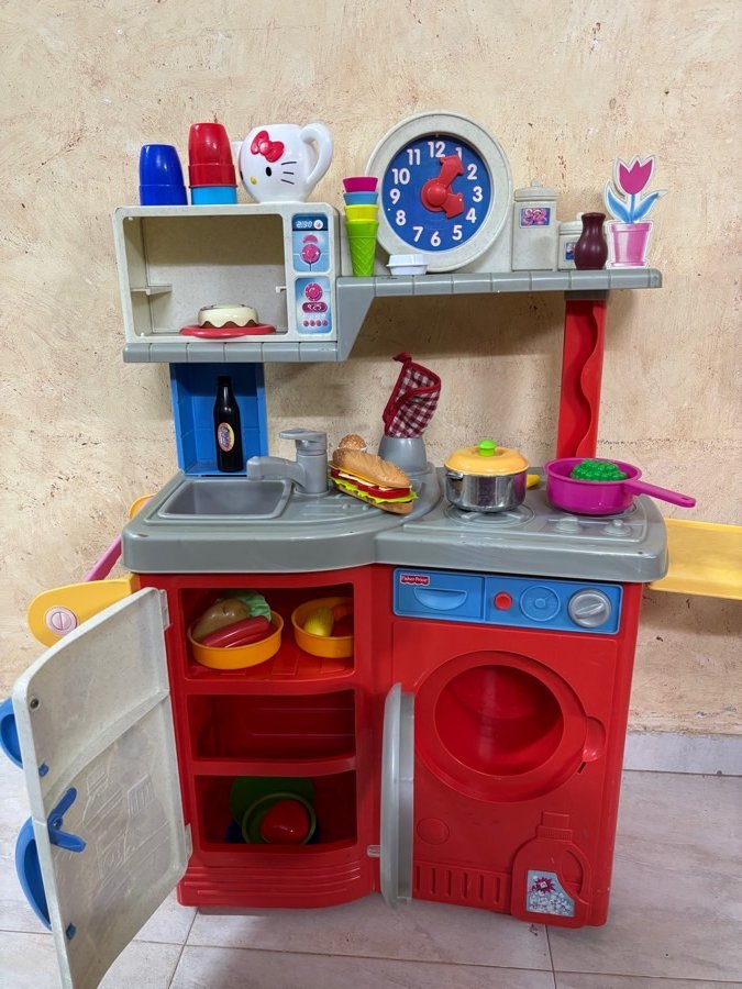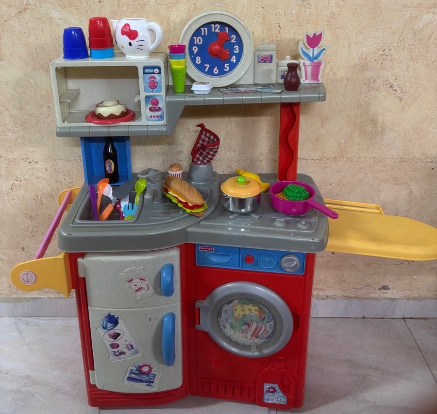 مطبخ بلاستيك قوي ماركة fisher price ( ارتفاع ٨٦ سم ، عرض ٦٥ سم ، عمق ٣٠ سم )