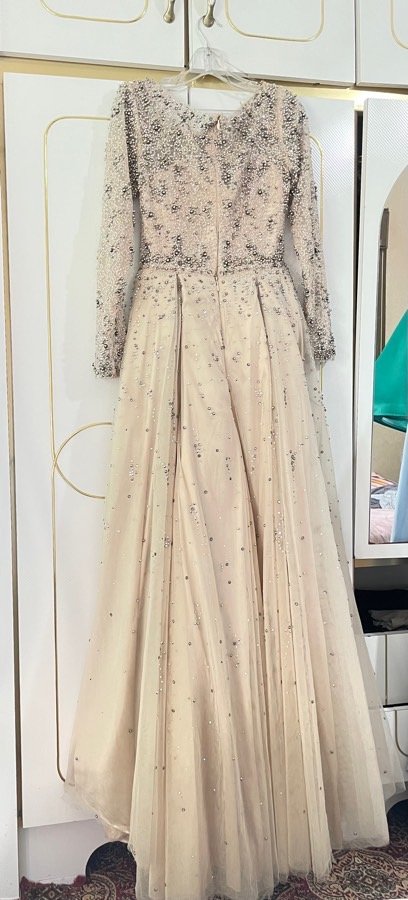 فستان بنفع شرعي او عادي لون بيج نفس العارضة