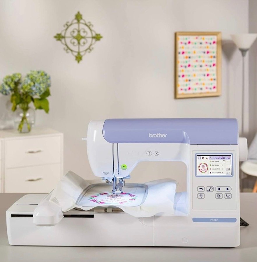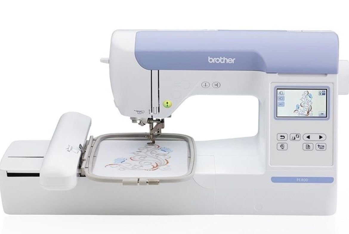 ماكينة تطريز Brother PE800، بحالة ممتازة وشغالة 100%. ✅ المواصفات: • مساحة تطريز 5x7 إنش • شاشة لمس ملونة للتحكم والتعديل على التصاميم • مدخل USB لإضافة التصاميم الخاصة • أنماط وخطوط تطريز مدمجة • سهلة الاستخدام ومناسبة للمبتدئين