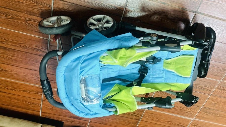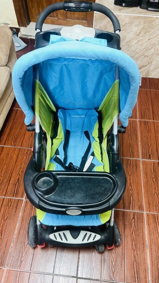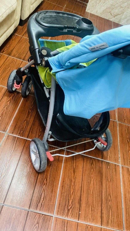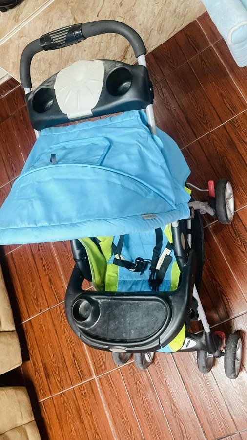 عرباي بلون الأزرق حجم كبير جدا مع سلة كبيرة بحاله ممتازه من عمر شهر لغايه ٥ سنوات