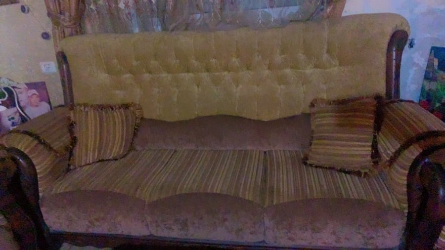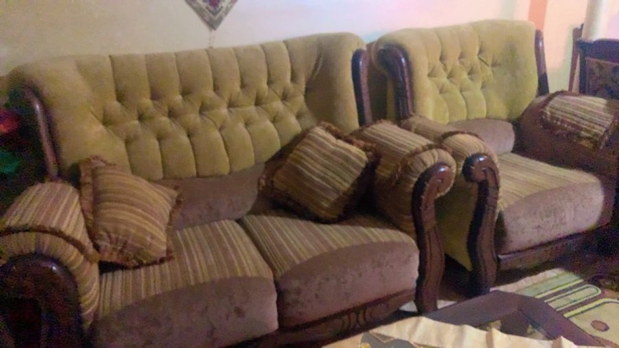 صابون تسع مقاعد مع طاولة وسط وعدد ٢ سكملات بحالة جيده جدا