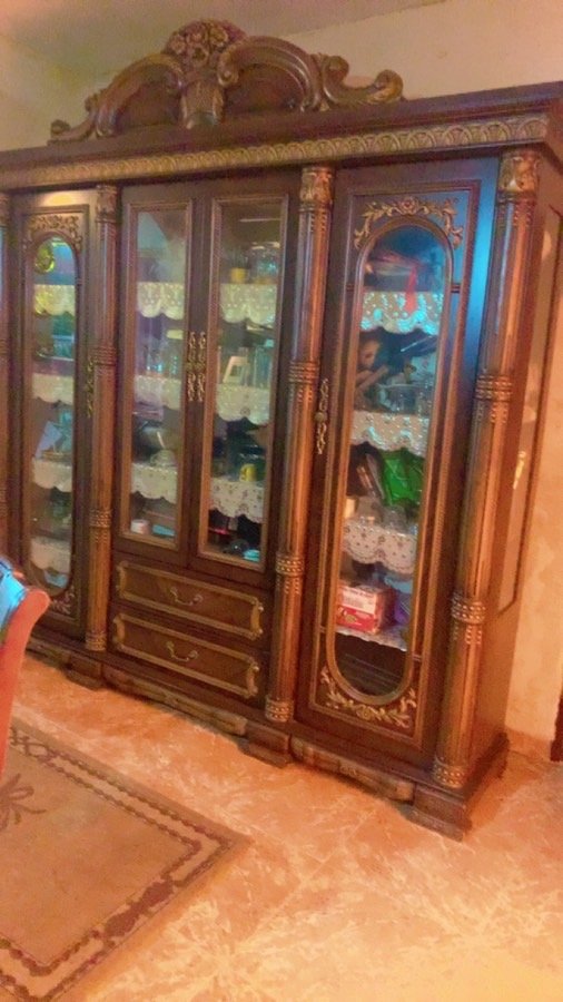 ست دفات خشب ممتاز وثقيل بحاله ممتازه ويوجده اضاده داخل البوفيه ورفوف زجاج ومري خلفيه