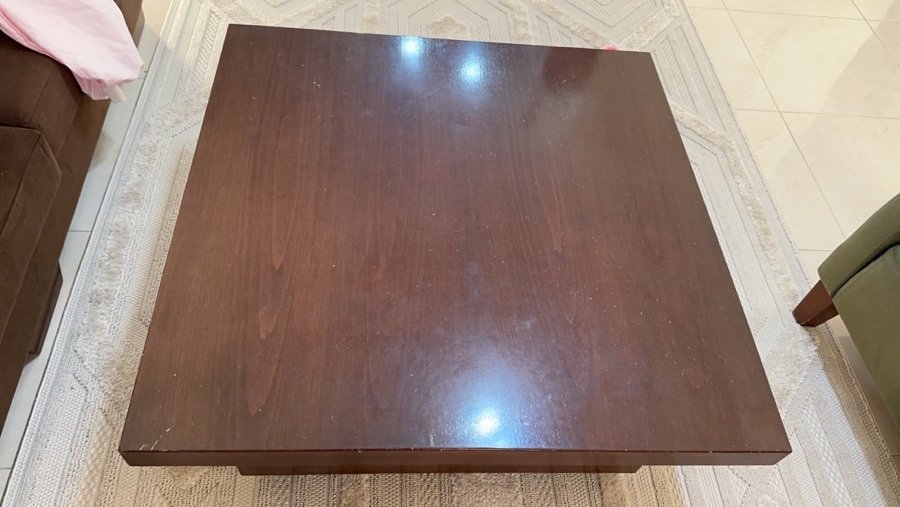 طاولة وسط حجم كبير وثقيلة خشب ممتار بوضعية ممتاز يوجد بعض النتوء عليها