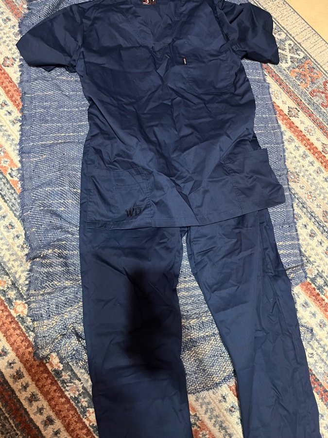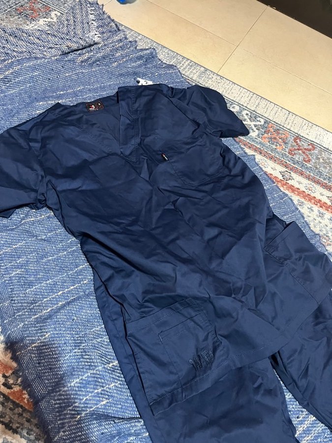 بدلة طبيّة scrub مش ملبوسة بتاتاً ماركة worker dress سايز ميديوم النمرة بعدها عليها مجعلكة لانها كانت مضبوبة