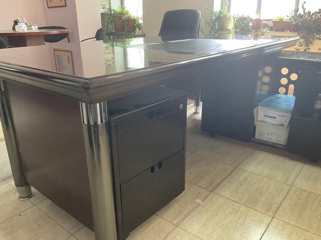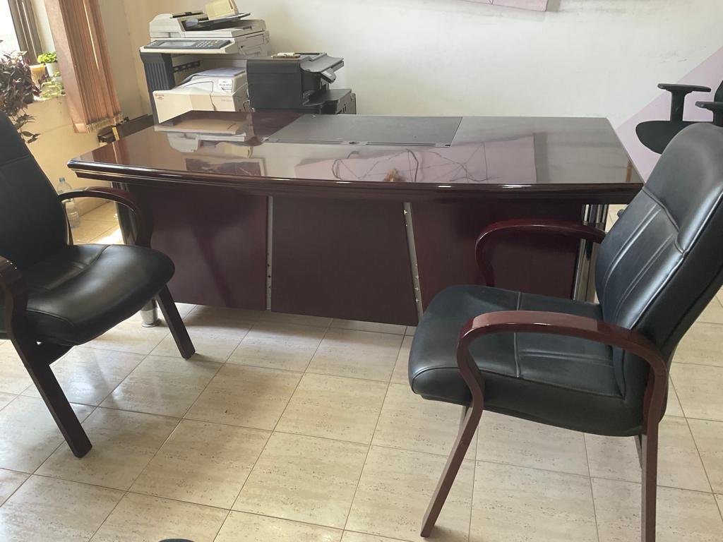مكتب مدير مع مساعد قياس 200x100cm مع كرسي جلد عدد 2 في حالة جيدة جداً بسعر 1800 شيكل