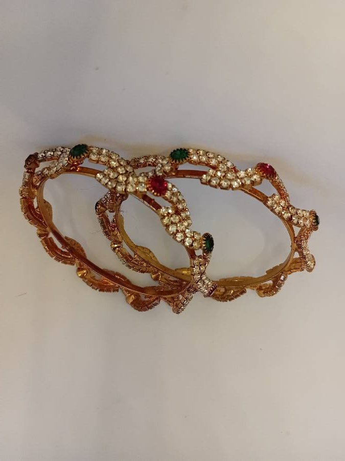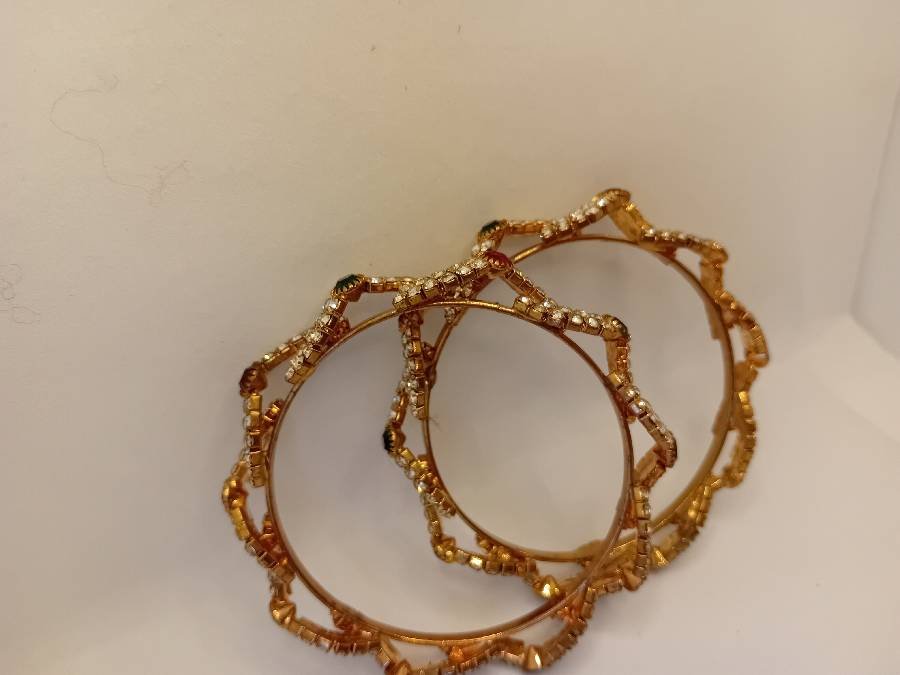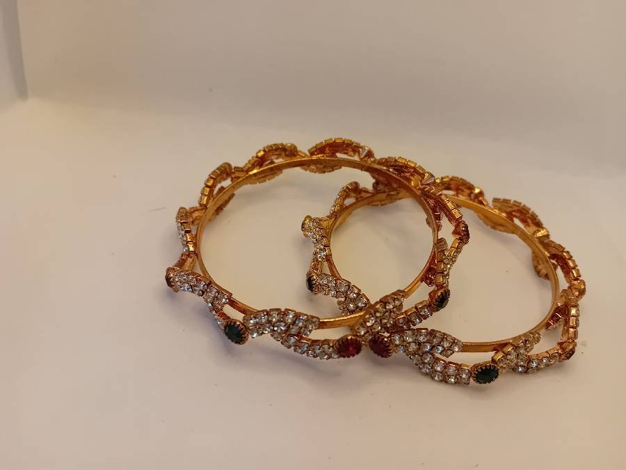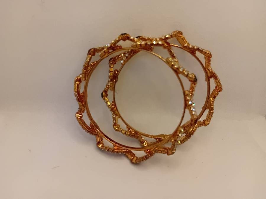 طقم اساور ذهبي مع خرز الوان جديد